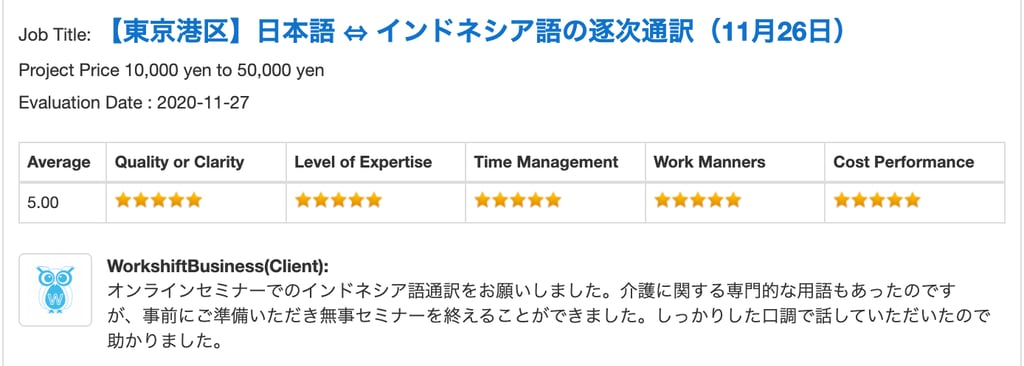 2023: Scouted by SunFlare a project: Translation of "internal rules" and other documents in the field of financial institutions from Japanese to Bahasa Indonesia. Three consecutive requests from the same client.